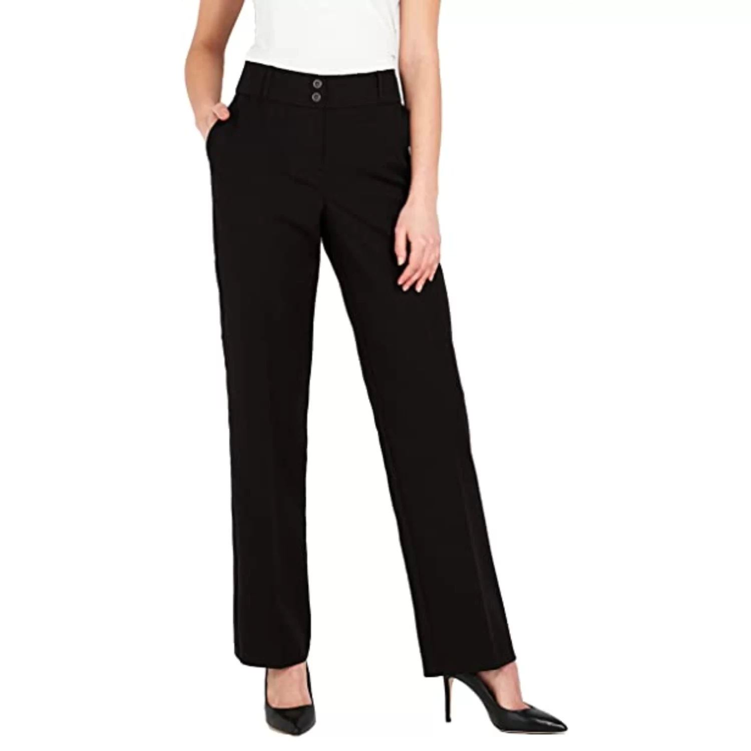 - Womens Tailored Wide Leg Trousers Smart Formal Office Work Straight Leg Trouser. These smart trousers will look great teamed with both tighter or loose fitting top.It has 2 front Cross Pockets, Deep enough to hold the phone?Smooth-feel, Machine Washable.